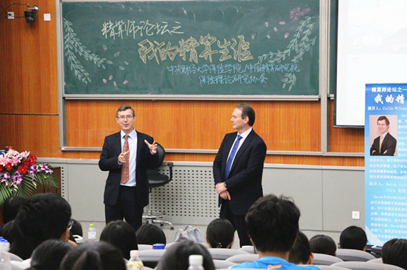 9月22日下午,由伟德国际victor1946、中国精算研究院主办,保险研究理论协会协办的精算师论坛之“我的精算生涯”专题讲座在沙河校区学院4号楼107热烈开讲。讲座主办方有幸邀请到英国精算师协会当选会长Colin Wilson先生与FICA,英国精算师协会执行总裁Derek Cribb先生与同学们分享他们的精算生涯与人生经验。伟德国际victor1946精算科学系系主任郑苏晋副教授、精算科学系刘健老师等出席了本次讲座。