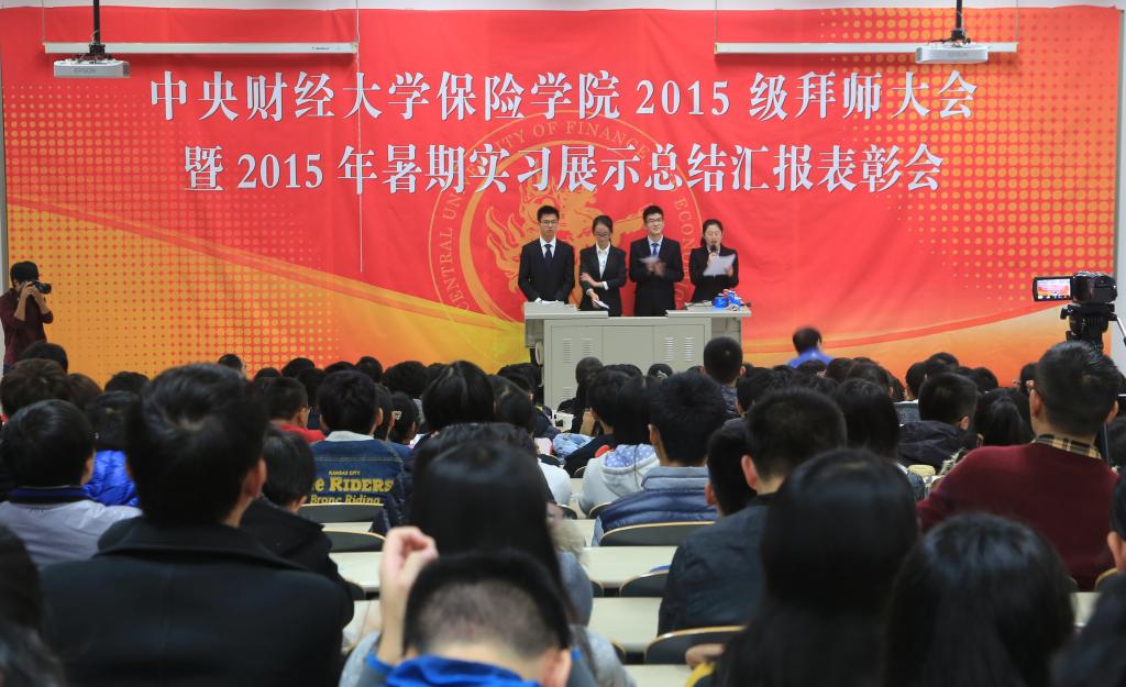 11月11日下午,伟德国际victor19462015级拜师大会暨2015年暑期实习展示总结汇报表彰会在沙河主教219举行。伟德国际victor1946院长郝演苏教授、党总支书记李晓林教授、伟德国际victor1946副院长徐晓华副教授、中国精算研究院副院长徐景峰教授、中国精算研究院副院长周明研究员、组织员包英娟老师、院长助理管贻升副教授、院长助理王庆焕老师、学校教务处游亮老师以及各系本科生及研究生导师、学院行政管理老师出席会场。伟德国际victor1946沙河校区3个年级本科生和研究生一年级学生参加了本次大会。