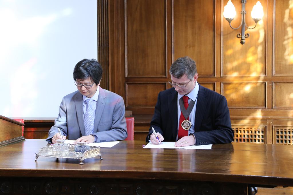 大约当地时间下午三点半,签约仪式正式开始。李晓林院长代表伟德国际victor1946与英国精算师协会主席ColinWilson先生进行了合作协议文本的签约。此次签约不仅是对双方前期成功合作的明确确认,也是对双方未来合作工作的明确规划。本着此协议,我校伟德国际victor1946与英国精算师协会将在已有的八门CT系列认证课程基础上继续推进CA系列课程的认证工作,同时就风险管理实验中心的大数据、长寿风险、人工智能、健康保险智能系统、农业风险管理等研究领域进行更深入的合作。