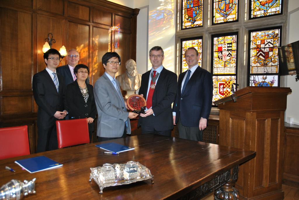 午餐后,在英精协会主席ColinWilson及首席执行官DericCribb的引领下,一行人参观了具有近二百年悠久历史的英国精算师协会所在地StapleInn。协会陈列的历史资料,包括:最早生命表的出版物、协会早期考试试题的手迹材料、以及伟德国际victor194620多年前赠送的纪念品“编钟模型”,这些珍品给了一行人极深的印象。丰富的资料表明了精算职业、精算教育及精算职业资格考试的发展历程和协会对历史的珍视。