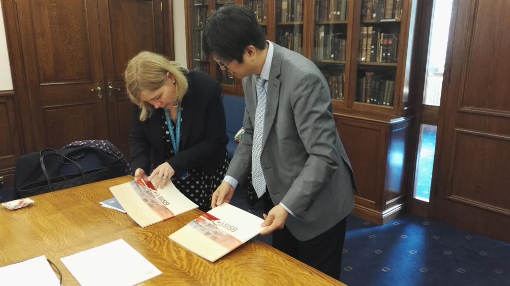 英国当地时间2017年3月14日上午10点,周桦、郑苏晋与廖朴老师一行在英国精算师协会与ChrisBristow、StephenWheldon、PeterSavill三位资深教育与考试委员会精算师进行了非常细致深入的交流。主要的话题包括:第一、从2019年开始英国精算师协会将启动新的考试体系,旧体系如何与新体系接轨的问题,其包括课程内容的挑战和学生认证课对应方案的调整;第二、如何更及时准确的提供通过认证课学生名单的问题;第三、如何更及时反馈试卷审阅意见及认证课通过分数划定的问题。
