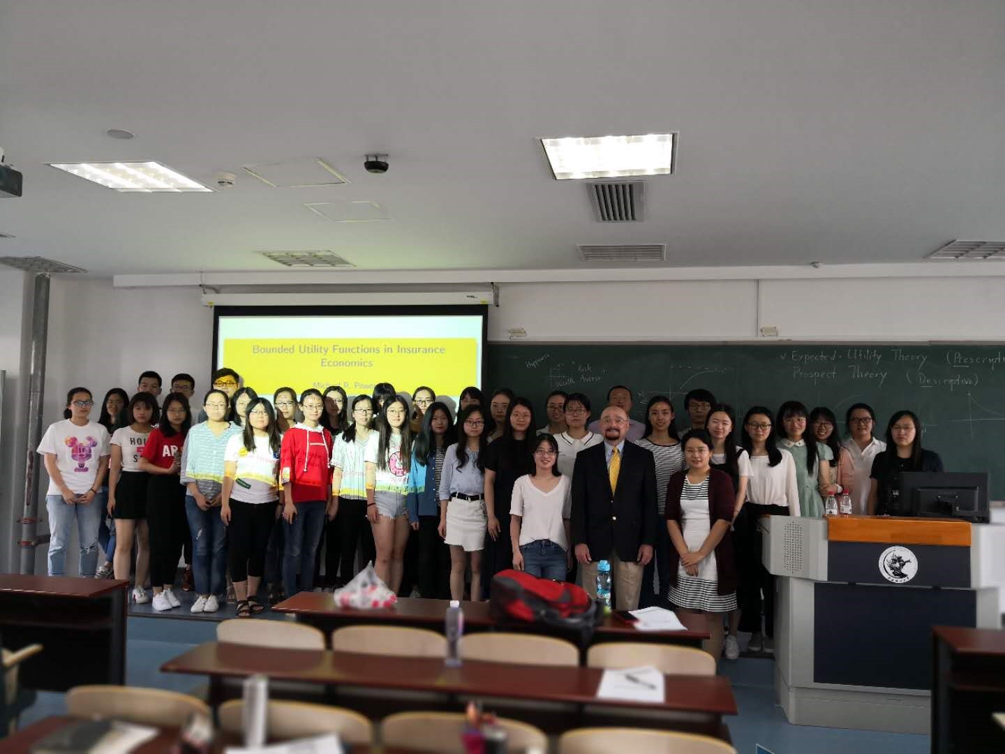 5月23日下午,清华大学经管学院苏黎世保险集团讲席教授Michael R. Powers先生来访我院,并以“Bounded Utility Functions in Insurance Economics”为主题,为我院2017级研究生作了一场优质的学术讲座。我院陈华副教授和郑莉莉副教授、西南财经大学王晓全副教授参加了本次讲座。