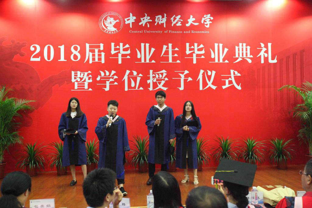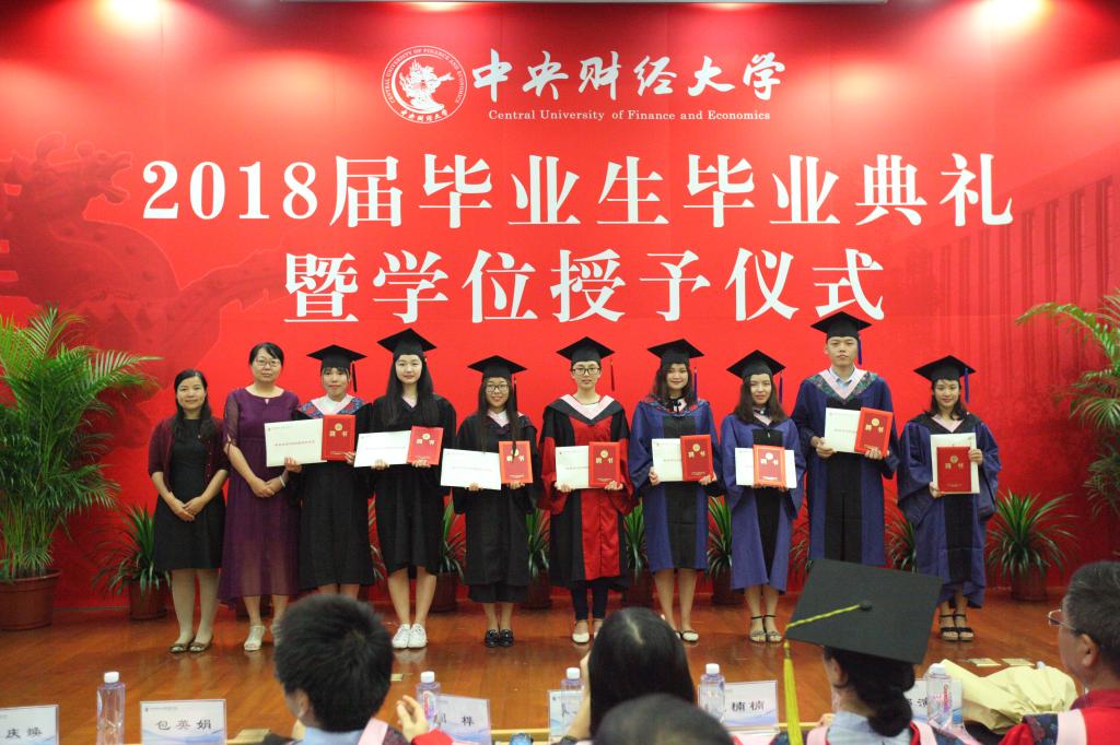 王颖老师宣读了表彰2018届优秀毕业生的决定,由副院长周明老师、副院长周桦老师、院长助理王庆焕老师为获奖同学颁发证书和纪念品,希望同学们毕业之后再次展现中财人、保险人的优良品质和光荣传统。