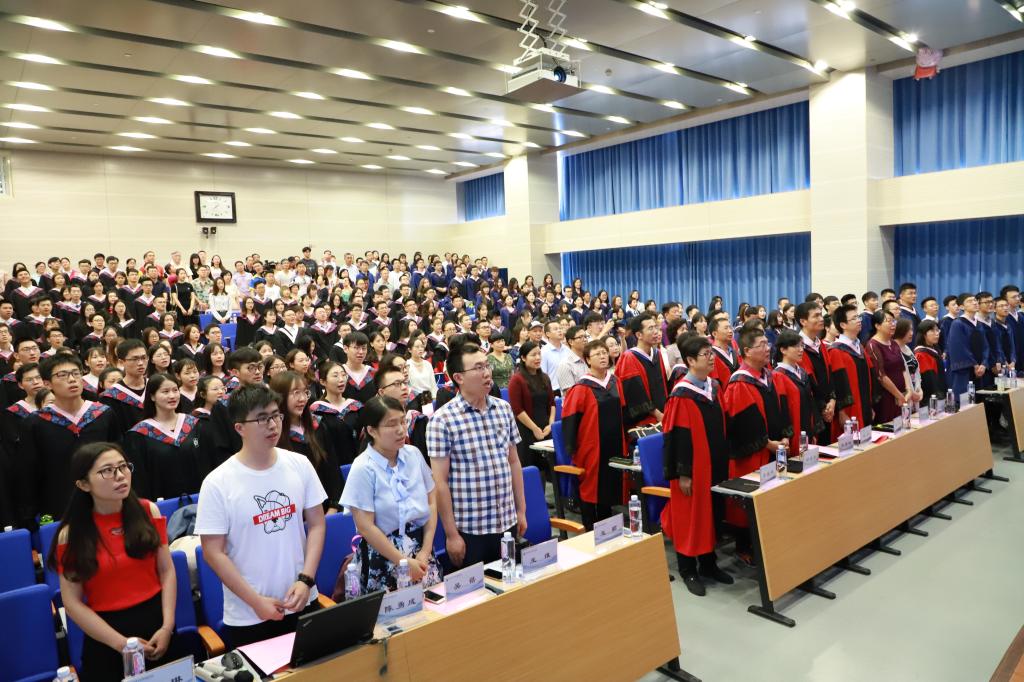 在庄严肃穆的国歌声中,伟德国际victor19462018届毕业生毕业典礼暨学位授予仪式拉开了序幕。由2018届毕业生精心准备的毕业视频《你好,再见》带领在场师生重温了美好的大学时光,伴随着视频播放,同学们时而爆笑欢呼,时而感动怀念,沉浸在对学校的无尽回忆和留恋中。