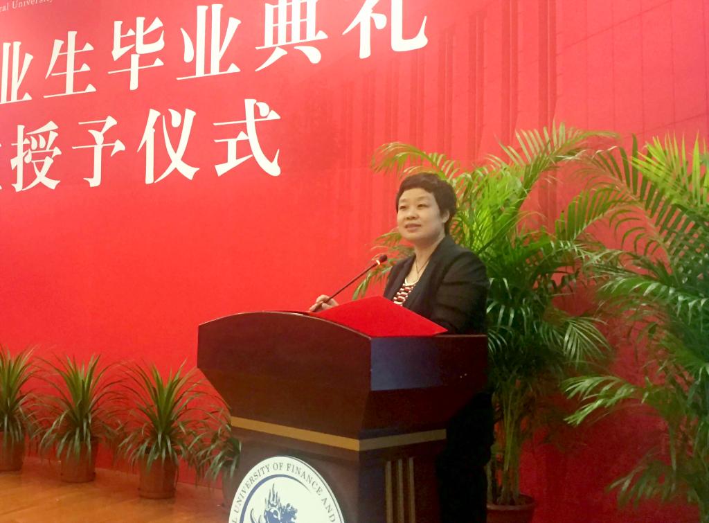 在学生代表发言环节,2015级保险学博士毕业生石晨曦作为研究生毕业生代表发言。她回忆了在伟德国际victor1946求学期间的点点滴滴,表达了对伟德国际victor1946和恩师们的真挚感谢。2014级精算学本科毕业生王博作为本科生代表发言。他回顾了四年大学时光的美好记忆,展现了一个本科生的大学蜕变,表达了对母校、对伟德国际victor1946的美好祝愿。