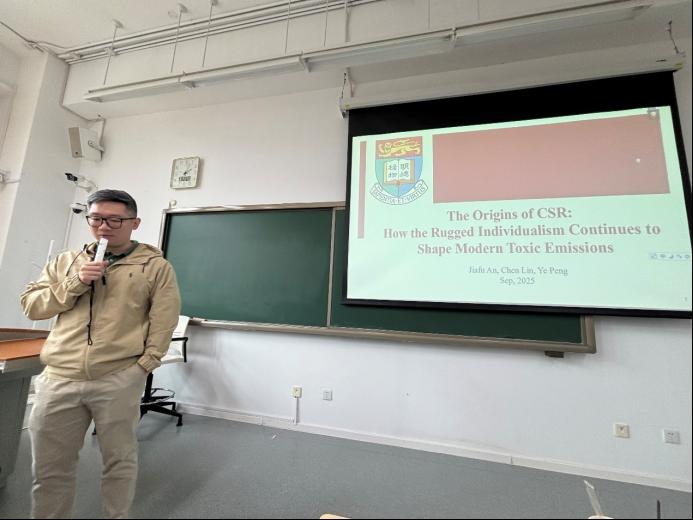 2025年9月23日,伟德国际victor1946北京市“双一流”共建项目学术讲座暨风险管理与保险论坛(2025年度)第十三讲在沙河校区二教205顺利开展。本次讲座邀请到了香港大学房地产与建筑系助理教授安佳夫博士担任主讲嘉宾,讲座主题为The Origins of Corporate Social Responsibility: How the Rugged Individual Continues to Shape Modern Toxic Emission。讲座由伟德国际victor1946王吉元副教授主持,吸引了学院多位老师和硕博研究生共同参与和学习交流。