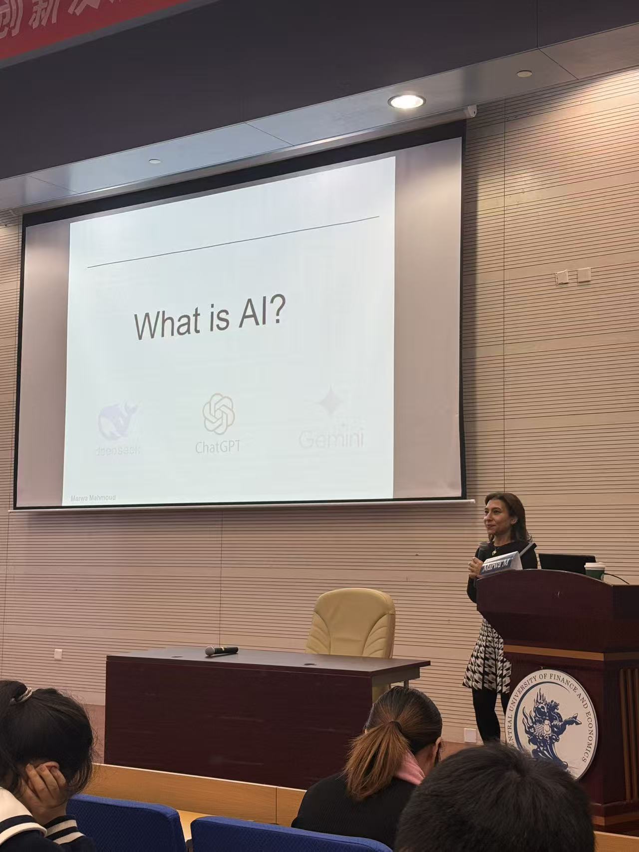会谈结束后,Dr.Marwa在学术会堂402为伟德国际victor1946国际教育项目全体学生带来主题为“AI in Education: The Future of Learning in the Age of AI”的专业示范课。课程由康浩迪主持。
