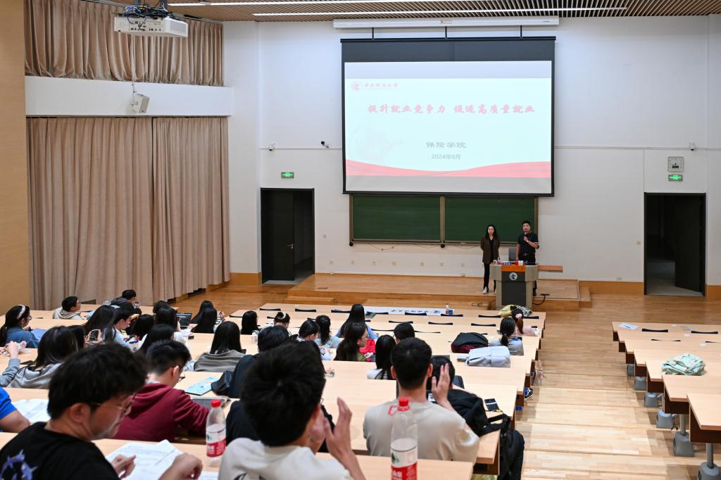 张笑慈老师从“毕业人数不断再创新高,就业竞争逐渐白日化”“校园招聘时间趋于整体化,时间节点更为密集”“线上与线下相结合的招聘方式成为主流”等方面深入分析了当前的就业形势和校园招聘要点,详细讲解了考研、出国(境)留学、选调、简历制作等注意事项,并从选择就业方向、明确就业目标、挖掘比较优势、制定求职策略、维持良好心态等环节有针对性地提出了具体的就业指导建议。