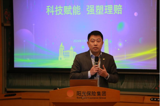 阳光产险总公司理赔服务部副总经理由忠博进行《智能承保理赔》主题讲座,主要从科技理赔发展历程、科技引领行业理赔变革、科技理赔在阳光的实践应用以及科技理赔展望等四个方面进行分享。分享结束后,同学们与由忠博总经理进行了深入的交流讨论。