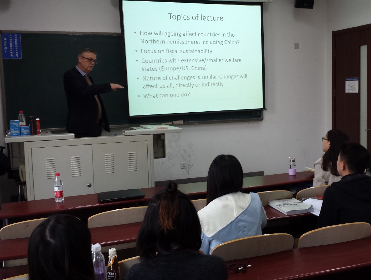 在讲座中,Tor Eriksson教授以详实数据描绘了全球性的老龄化现象,分析了老龄化现象对社会保障制度、劳动人口供给以及养老服务等多方面的影响,并指出了针对老龄化现象的困境的可能解决方案。在学术研讨会中,Tor Eriksson教授通过问卷调查的方式收集了公司管理层雇员不同性别特征和管理者特征的数据,并建立相应指数分析不同管理层级男性和女性管理者存在的性别成见(gender stereotype)。讲座和研讨会中,师生通过和Tor Eriksson教授的交流,对相关问题和研究方法有了更深入的认识。