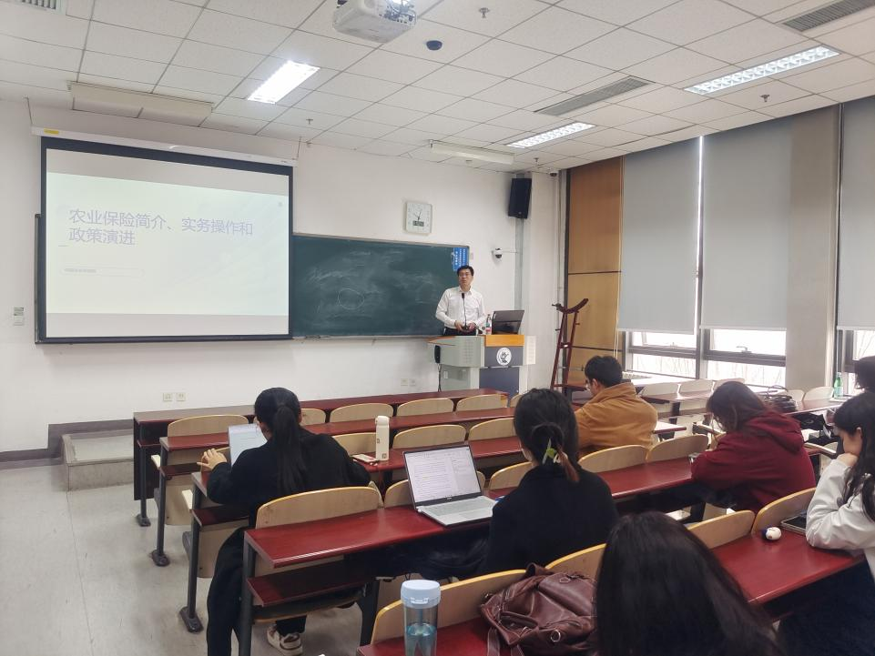随后,张宝海先生着重介绍了我国为何大力发展农险。从中央要求看,党中央、国务院高度重视农业保险工作;从理论上讲,农业生产的“高成本、高风险”特征,决定了需要发挥政府“有形之手”的作用;从国内实践看,农业保险是市场经济条件下服务“三农”的有效方式;从国际经验看,农业保险是开放经济条件下财政支农的重要抓手。同时,张宝海先生也提醒同学们拓宽知识面,多关注保险周边产业的变化和动态,以更好地开展未来工作。