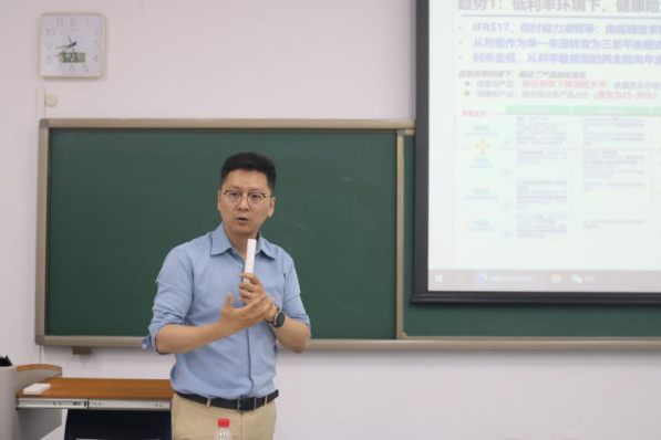 2025年5月23日晚,伟德国际victor1946在二教103教室举办了《保险科技》课程的专题讲座。中国人寿再保险部门总经理张楚先生受邀作为主讲嘉宾,为2024级研究生开展了主题为“健康险发展趋势研判”的精彩讲座。张楚先生结合宏观经济环境,系统梳理了中国医疗保障体系和健康保险行业的现实困境与未来方向,为在场师生带来前沿思考和深刻启发。
