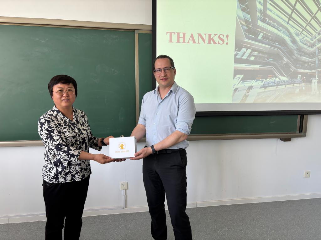 郑苏晋副院长为Mierau教授赠送学院文创产品