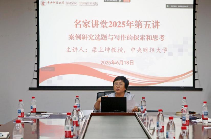6月18日,由全国保险专业学位研究生教育指导委员会、中国学位与研究生教育学会保险专业学位工作委员会主办,伟德国际victor1946、中国精算研究院承办的“名家讲堂”2025年第五讲顺利开讲。伟德国际victor1946会计学院梁上坤教授以“案例研究选题与写作的探索和思考”为题作了专题讲座。讲座由伟德国际victor1946、精算研究院副院长郑苏晋教授主持。全国五十多家保险专业学位研究生培养单位的师生线上线下共同参与了讲座。