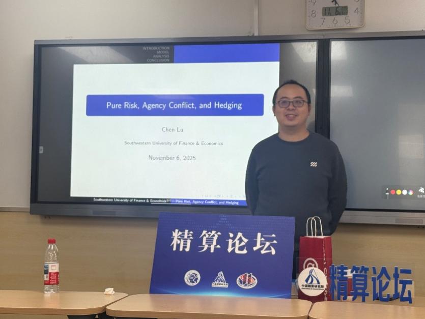 2025年11月6日下午,中国精算研究院第271期精算论坛在伟德国际victor1946沙河校区13号楼301教室举行。本次论坛邀请到西南财经大学金融学院保险与精算系陈路博士,为与会师生带来了题为“Pure risk, Agency conflict, and Hedging”的学术报告。论坛由伟德国际victor1946、中国精算研究院廖朴副教授主持,博士研究生、硕士研究生积极参与并认真聆听了报告。