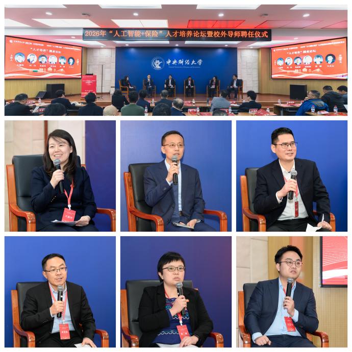 论坛还举行了新增校外导师聘任仪式。郑苏晋教授宣读了2026年度新聘任校外导师名单。本次新聘任的15位校外导师,均为业内具备丰富实践经验和卓越专业素养的高管与资深专家。院长周桦、党委书记吕丽共同为新聘导师颁发聘书。各位校外导师结合自身从业经历分享了体会与感悟。他们纷纷表示,对获聘为校外导师深感荣幸,并承诺将充分发挥自身实践经验与专业优势,积极参与学院人才培养工作,助力学生职业成长与发展,与学院携手共育保险领域的高层次复合型人才。