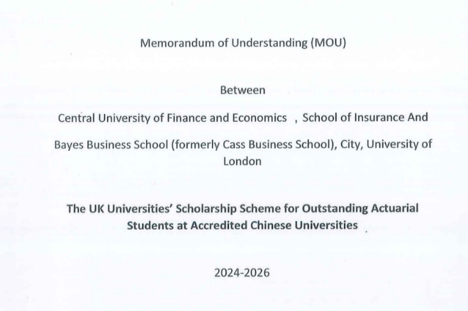 2024年4月25日,我院与伦敦大学城市学院贝叶斯商学院(原卡斯商学院)就奖学金计划签署三年合作协议。贝叶斯商学院提供精算奖学金,鼓励我院修读英国精算师协会(IFoA)认证课程的学生在贝叶斯商学院攻读精算管理硕士、精算硕士、精算商业分析硕士等专业。学生就读期间可获得英国精算师协会的职业资格考试科目CP1、CP2、CP3、SP1、SP2和SP4到SP8,以及科目CB1、CB2、CM1、CM2、CS1和CS2的认证,具体取决于学生参加的项目。奖学金金额为学费的15%,可以直接从贝叶斯商学院的学费中扣除。