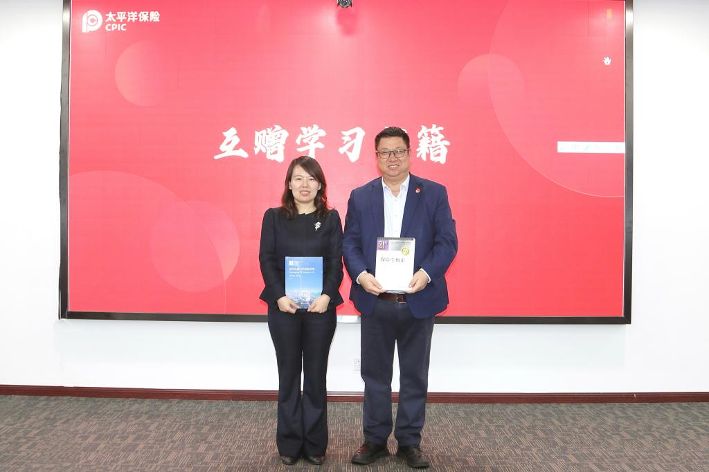 应太平洋产险贵州分公司邀请,王丽珍副院长一行为公司“学习贯彻党的二十届三中全会精神”硬笔书法比赛获奖的员工颁奖,并与公司互赠学习书籍。