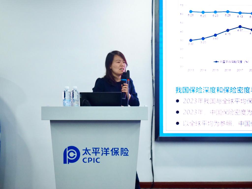 王丽珍副院长面向太平洋产险贵州分公司员工做关于“新国十条”解读的报告。王丽珍副院长深入分析了我国保险业的发展现状、三个“国十条”的比较、新版“国十条”的重点内容等。她指出,尽管我国保险业总保费收入位居全球第二,但保险深度和密度与全球平均水平相比仍有较大提升空间。新国十条的出台是国家对保险业发展的高度重视和期望的体现,它要求保险业在管控风险的前提下,高质量服务实体经济、保障民生,切实发挥“两器”和“三网”的作用,同时要秉持“大保险观”理念,实现从追求速度和规模向价值和效益转变,助力中国式现代化全面推进。