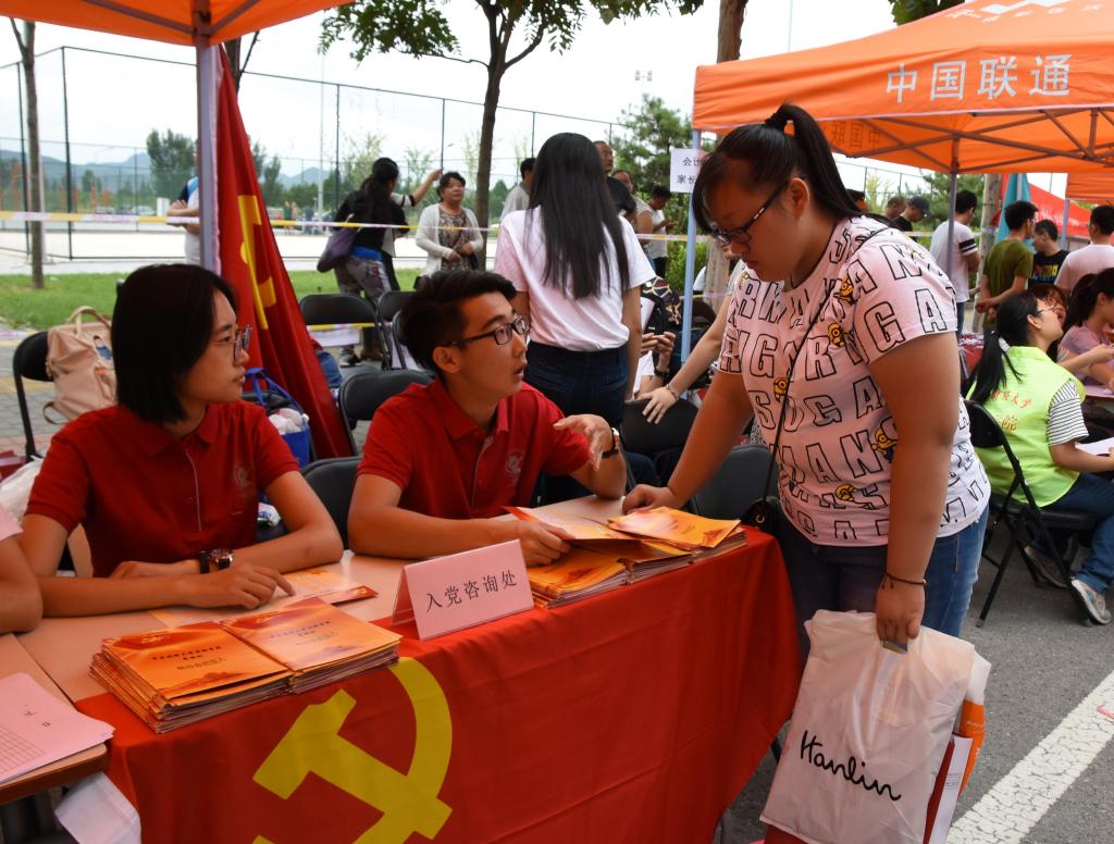 当天到咨询处询问入党事项的新生络绎不绝,“请问大学怎么才能入党啊”,“大学入党是不是很难啊”,“我什么时候可以递交入党申请书?”,“入党会影响申请出国留学吗?”。。。。。。对于这些问题,党员志愿者们耐心细致地一一为他们解答。考虑到很多家长也很关心孩子的入党问题,咨询处的志愿者们还在家长来往密集的地方派发了宣传折页并解答疑问。一位新生家长表示自己作为一名老党员,非常希望孩子能够入党,他认为入党能够促进青年人成长成才、有责任有担当。另一位家长表示,自己虽不是党员,但对党组织充满了向往,希望自己的孩子在大学能有机会入党,而伟德国际victor1946的入党宣传折页正好能帮助他快速了解入党程序,可以说是发放得非常及时。