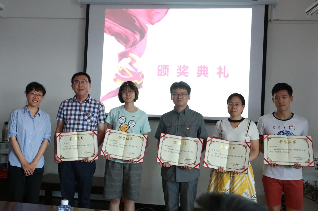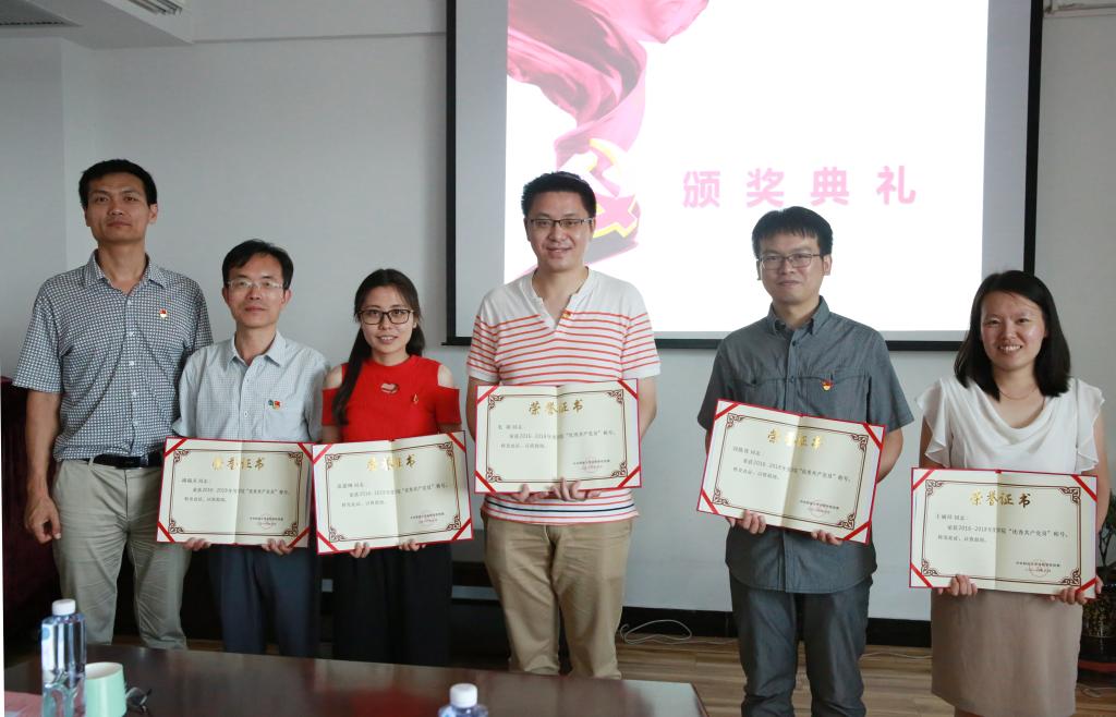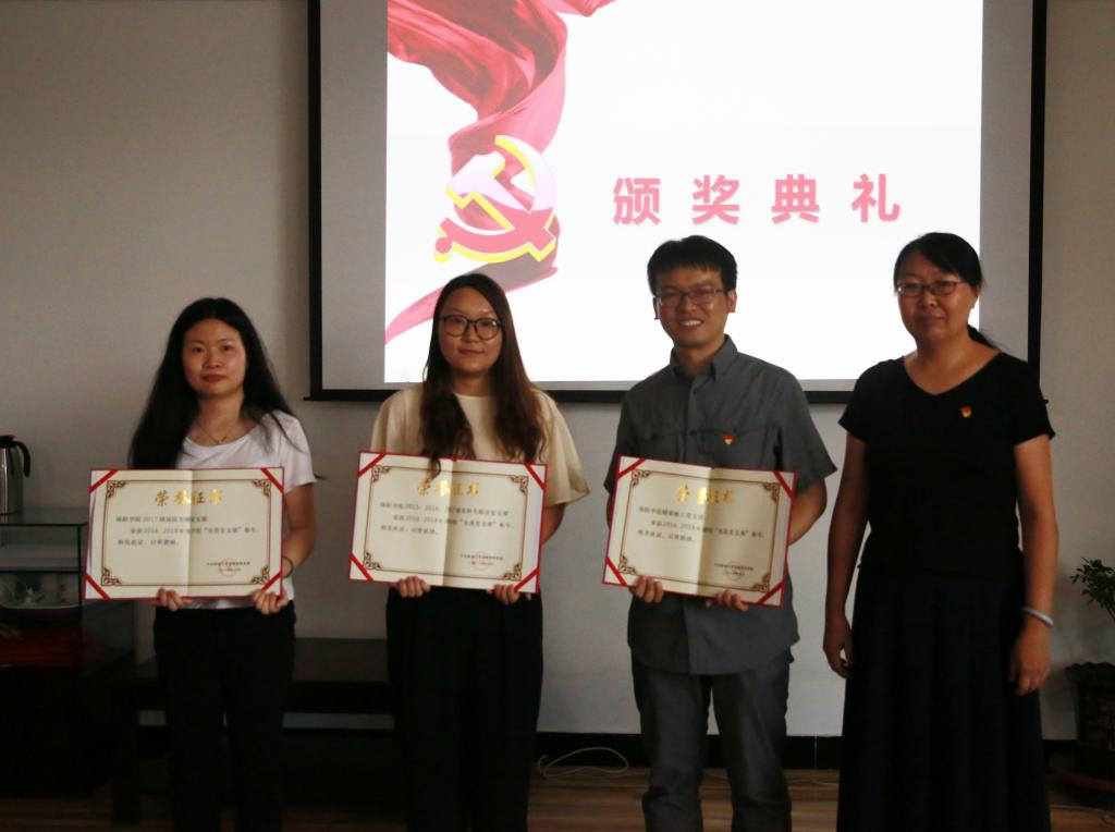 会上,学院党委组织员包英娟宣读《关于表彰2016—2018年度伟德国际victor1946先进党支部、优秀共产党员、优秀党务工作者的决定》,由副书记张楠楠老师、副院长周明老师、组织员包英娟、党委委员刘宁静老师为优秀党务工作者、优秀教工党员、先进党支部和优秀学生党员颁发证书并合影留念。