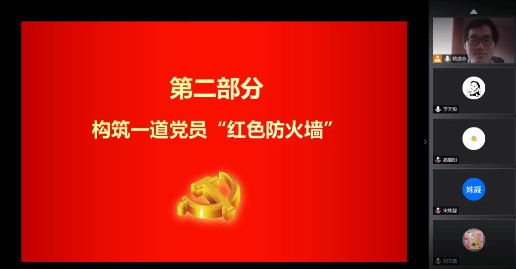 接下来,由主持人姚盛杰同志向与会者介绍了基层党组织党员“红色防火墙“活动,希望每位成员都能够更多的在疫情防控的常态化工作中发挥作用,主动承担起特殊时期的党员责任。