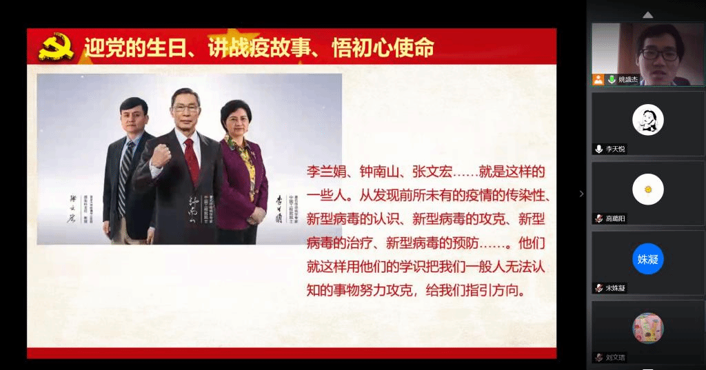 第一项为战役故事宣讲,主持人声情并茂地说道:“为迎接党的诞辰、感恩战疫英雄和更好地牢记初心使命,我党党支部在线上开展了以‘迎党的生日、讲战疫故事、悟初心使命’为主题的一系列组织生活会,支部党员分享身边战疫故事,抒发爱国情怀,据此汇编成战疫故事汇。“在他讲述下,全体党员完整回顾了疫情期间支部的工作历程。