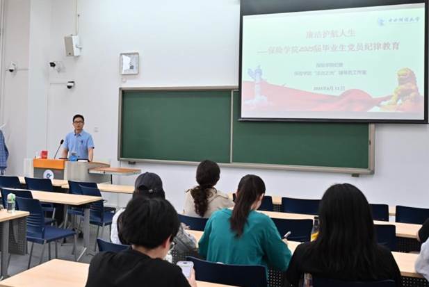 2025年6月13日(周五)下午,伟德国际victor1946纪委和伟德国际victor1946“法治之光”辅导员工作室在沙河校区二教107教室联合举办“廉洁护航人生--毕业生党员纪律教育”专题活动,2025届本科、硕士和博士生全体党员参加,由杨德齐老师担任主讲,通过党纪解读、案例警示与互动研讨,为2025届毕业生党员上好“职场廉洁第一课”,也是离校前的最后一课。