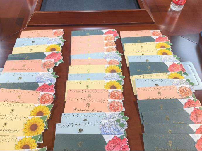 学生们踊跃参与“馨香满园谢师恩”立体贺卡制作与传递活动,他们亲手书写的祝福贺卡承载着莘莘学子对老师的真挚感激与美好祝愿,于教师节当天登门送达各位老师手中。学院楼内处处洋溢着馨香与温情,勾勒出一幅师爱生、生敬师的动人画卷。