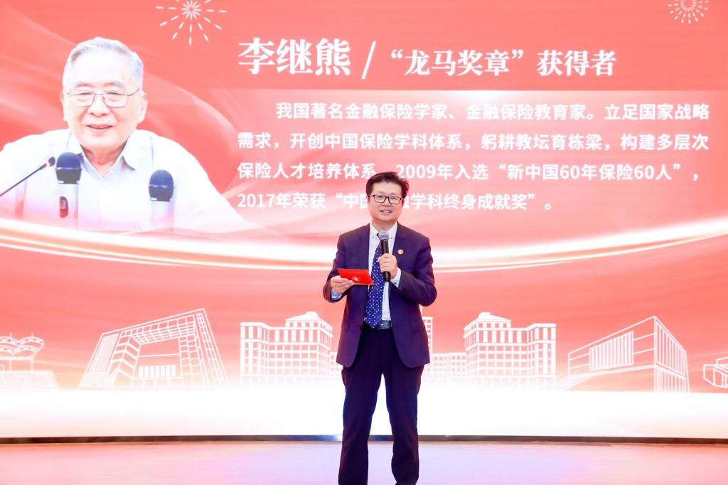 活动伊始,现场播放了李晓林教授作为讲述人在首届“龙马奖章”颁奖仪式上讲述我国保险教育重要开拓者、中国金融学科终身成就奖获得者、第一任系主任、资深教授李继熊老师事迹的视频片段。视频中李晓林教授深情的讲述感人至深,李继熊教授筚路蓝缕、躬耕教坛的崇高形象徐徐浮现,令在场教师无不动容,肃然起敬。