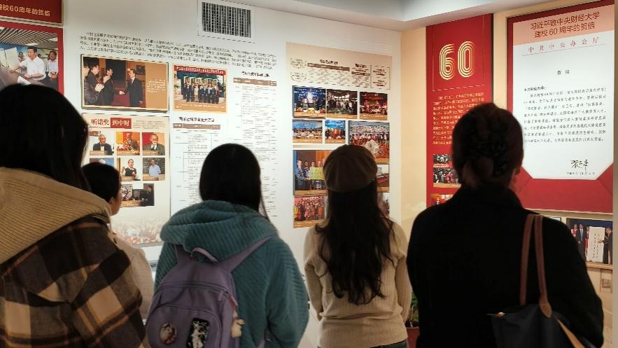 同学们驻足凝视,仔细聆听,深刻感受着学校七十余年来筚路蓝缕、开拓进取的艰辛与辉煌,被一代代中财大人艰苦创业、追求卓越、服务国家的感人事迹深深触动。
