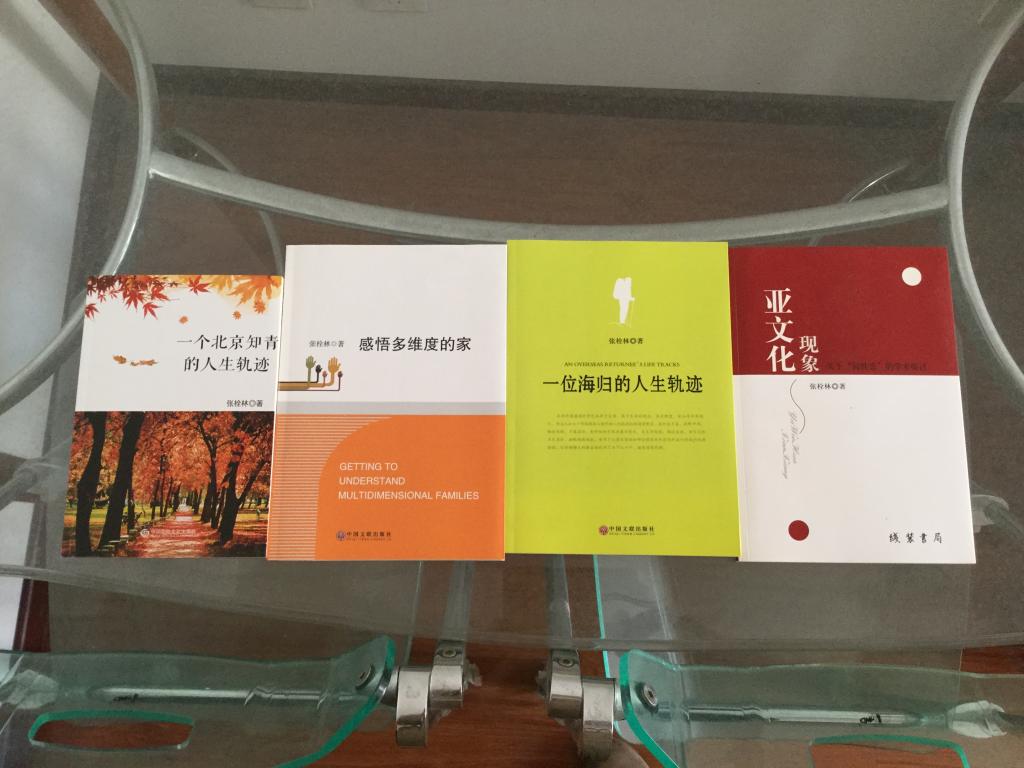 2004年,张栓林教授年满65岁,正式退休。到今年八月,张老就要迎来他的八十大寿。在这退休的十几年间,张老不仅延续了他的老本行,出版了《英汉保险词典》等专业书籍,还推出了适用于父母和孩子共同学习的《亲子英语》。但是,在张老的名片上,不仅仅只有“教授”二字,他更是一个“作家”,他对自己“不务正业”的评价,也正来源于此。最近几年,张老几乎每年都要出一本长篇小说——《一个海归的人生轨迹》《一个北京知青的人生轨迹》《感悟多维度的家》……现在手头上还有一本待出版的书籍。刚退休的时候,张老仍然坚持为专科的学生授课,后因为特殊原因不得已作罢。13年以后,张老开始出书,每天坚持工作五个小时,主要用于写作,其余时间看报纸杂志,晚上出门锻炼,天气好的时候会骑自行车到几十公里外的学校附近转转。在张老已出版的厚厚的一摞书背后,我们看见的,便是张老的自律和他对未知领域勇于探索的精神。