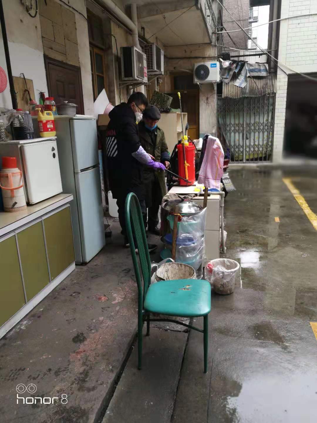 图片为当地街道年龄较大的党支部书记拍照的,照片虽然不太清晰,但这更显示了我们志愿者的真实工作场景