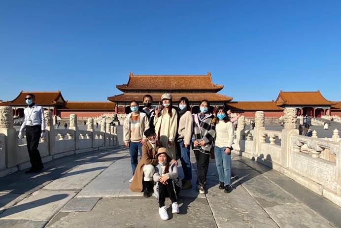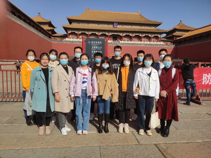 部分同学在故宫古建筑前的合照