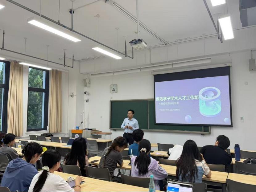 王吉元详细介绍了AI在精准风险评估、高效理赔、个性化产品服务以及辅助医保控费等场景的应用及其支撑技术。通过剖析“智能+保险”案例,师生共同反思新技术对传统保险原理(如大数法则)的挑战与启示,并探讨了AI如何助力实现“全生命周期健康管理”和优化体系效能,以服务于国家发展和改革。