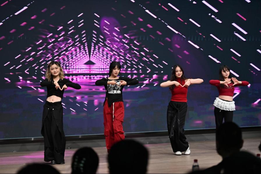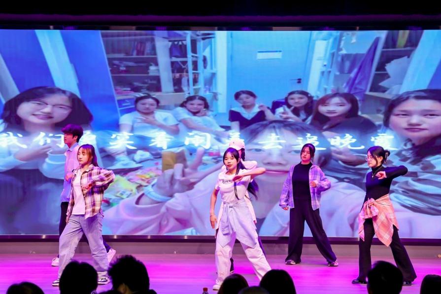 随后,社保25班同学以一支《等你的回答》惊艳四座。光影交错间,他们以极具张力的肢体语言,在青春的舞步中,完成一场关于美好的双向奔赴,赢得全场掌声和欢呼。