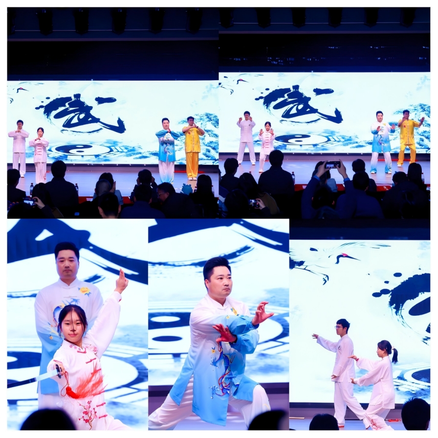 在创意节目《师生共筑·活力保险》中,燕东老师和学生代表们为大家带来武术表演,枪、剑、旗与太极拳的融合,刚柔并济间尽显中华武术的独特魅力,一招一式都蕴含着深厚的文化底蕴。现场观众被这精彩的表演深深吸引,不时爆发出热烈的掌声和欢呼声。