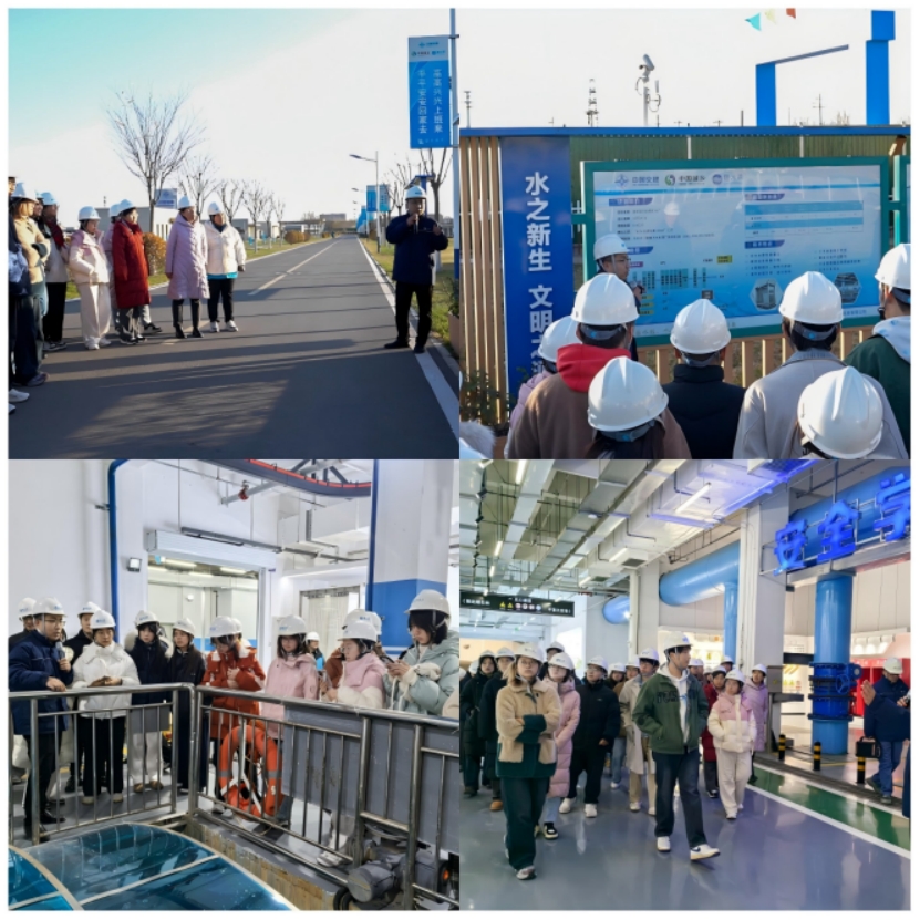 随后,实践团一行来到昌平区TBD再生水厂,对北京碧水燕平水处理有限公司的运营场景进行参观学习。在这里,师生们深入了解了再生水处理的全过程,从污水进厂,到经过格栅、沉淀、生化处理、深度处理乃至膜技术等多道严谨工艺,最终变为清澈透明的再生水。水厂先进的处理技术、严格的管理标准以及水资源循环利用的显著成效,生动展示了现代环保科技在推动可持续发展和生态文明建设中的关键作用,使同学们对“绿水青山就是金山银山”的理念有了更具象化的理解。