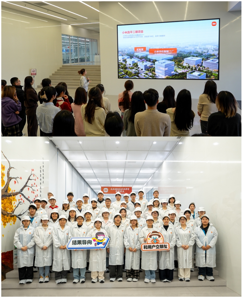 实践团首站抵达小米智慧园区。在园区内,师生们认真聆听了小米公司工作人员关于园区整体规划、智能化建设成果以及未来蓝图的详细介绍。随后,大家实地探访了高度自动化的智能手机生产线,亲眼目睹了精密器件如何经过一系列尖端工序最终成为智能终端产品。生产线的高效运转与科技感十足的作业环境,让师生们直观感受到了科技创新作为新质生产力核心驱动力的澎湃动能与巨大潜力,对智能制造业的现代化发展水平有了更为深刻的认识。