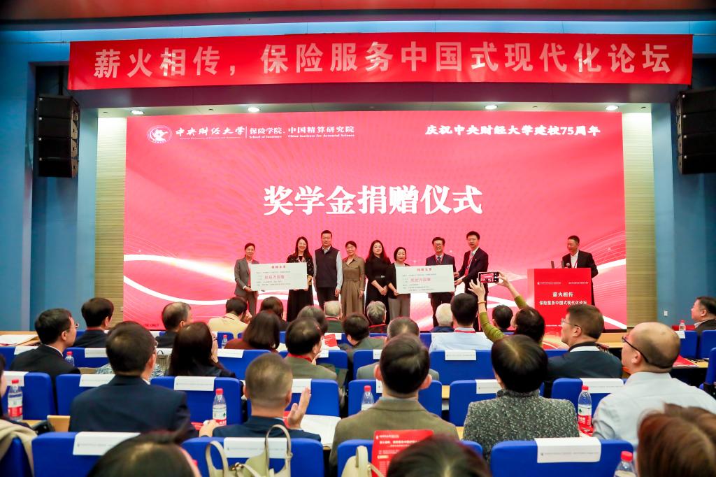 校友总会、教育基金会秘书长程丽芳代表学校教育基金会向捐赠的校友们表示感谢。她表示,此次捐赠展现了中财大一代代保险人爱与关怀的传承,在校生们一定能从这份温暖中汲取力量,奋勇向前。