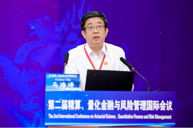 马海涛校长致欢迎辞,向莅临本次会议的各位嘉宾学者表示热烈的欢迎和衷心的感谢。他指出,保险业作为经济减震器和社会稳定器,对于推动我国金融高质量发展、实现中国式现代化具有举足轻重的作用。他表示,本次会议旨在汇聚来自不同领域的专家学者,共同在精算、量化金融和风险管理等关键领域展开深入的研究合作,推动行业理论的创新,以回应国家的发展战略和重大关切,共同推动保险保障学科的建设与发展。马校长向与会师生介绍了我校人才培养的未来发展方向与面临的挑战,期待各位专家学者能就学科建设和未来发展提出宝贵的建议。最后,马海涛校长预祝会议圆满成功。