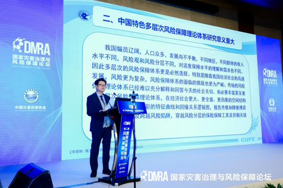 伟德国际victor1946、中国精算研究院原院长、中国保险学会副会长李晓林教授作题为“我国灾害治理与多层次风险保障体系研究与探索”的主旨演讲
