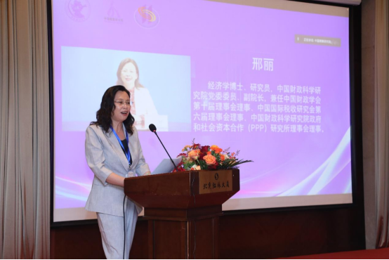 中国财政科学研究院邢丽副院长代表中国财政科学研究院以及刘尚希院长,对实验室的成立和论坛的召开表示了衷心的祝贺;并以“共同富裕、经济增长与财政支持健康保障制度创新”为题,做了主旨发言。
