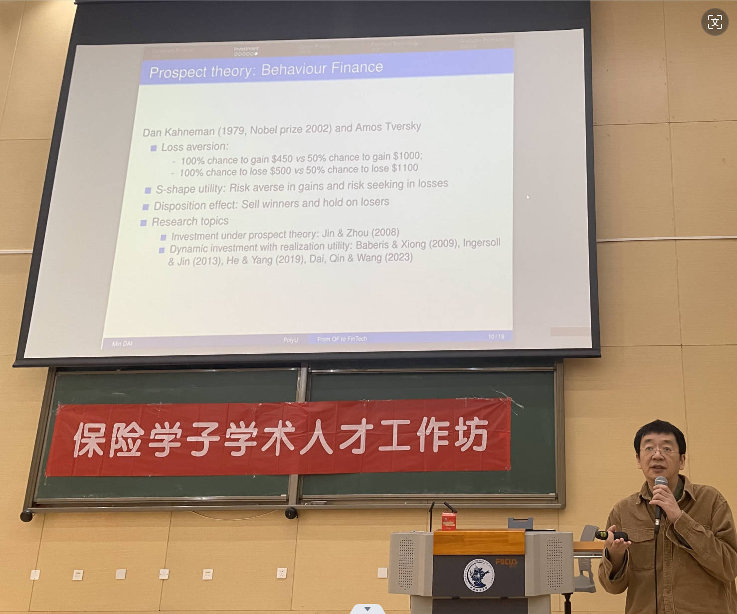 在讲座中,戴民教授首先介绍了量化金融的三大重要领域:最优投资、期权定价和公司金融。接着谈论金融科技(FinTech)相关延伸研究主题,并详细介绍该领域相关前沿方向,最后,戴教授简要介绍了香港理工大学的金融数学博士项目和量化金融与金融科技硕士项目,并对同学疑问进行耐心解答。