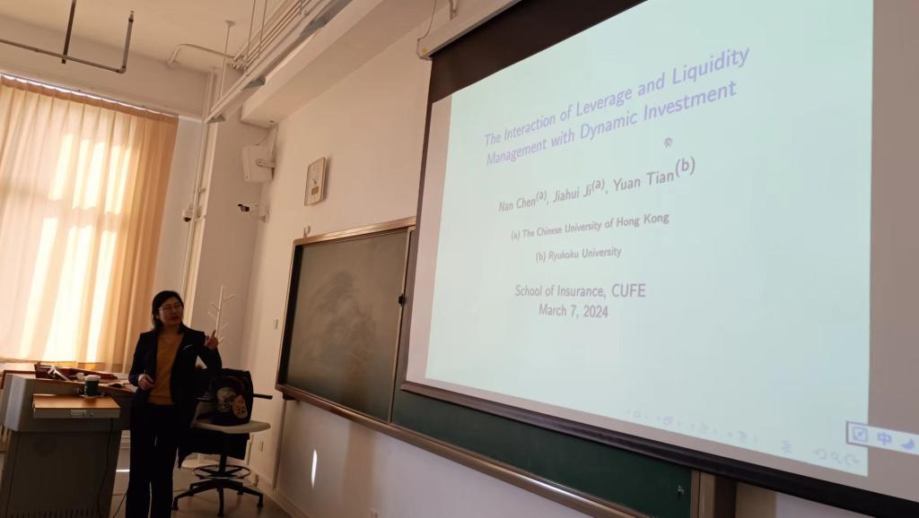 2024年3月7日上午日本龙谷大学经济系Yuan Tian教授应邀在伟德国际victor1946沙河校区给我院师生作了一场题为《The Interaction of Leverage and Liquidity Management with Dynamic Investment》的学术报告。