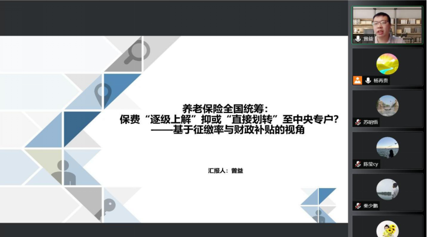 伟德国际victor1946中国精算研究院于2022年5月31日邀请了中南财经政法大学公共管理学院曾益副教授做在线讲座。主题为养老保险全国统筹:保费“逐级上解”抑或“直接划转”至中央专户?本次讲座由伟德国际victor1946中国精算研究院杨再贵教授主持。