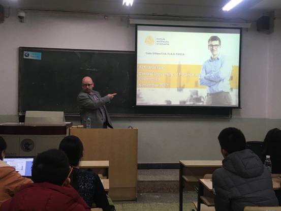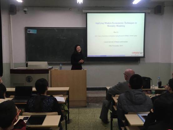 2017年11月20日18:30-20:30于主教学楼107,中国精算研究院邀请到了澳大利亚Monash大学教授Colin O’Hare、澳大利亚的中国人口老龄化研究中心李涵分别为大家带来了题为”Becomingan Actuary”、”Applyingmodern econometric techniques to mortality modeling”的报告,此次报告是我院第113期精算论坛讲座,我院郑敏教授、廖朴老师以及部分研究生参加了本次的讲座。