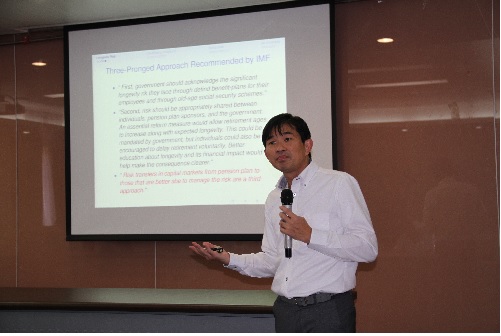 首先,Shripad Tuljapurkar教授作了题为“Global Trends in Population Aging and Longevity Risk”的报告。Shripad Tuljapurkar教授根据大量数据,详细讨论并识别了了长寿风险在全球不同地域呈现的不同趋势,并以中国作为比较参照,着重对比了一些与中国有着相似经济发展水平的国家和地区在人口结构上的特点,深入阐述了老龄化人口结构的产生过程,分化过程,并对其作出了预测。Shripad Tuljapurkar教授的研究成果对于处在深度老龄化人口进程的中国有着重要的借鉴意义,有利于帮助我们更好地了解和控制人口老龄化带来的一系列问题,正确处理长寿风险。