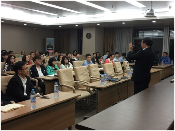 2016年10月17日晚上19:00于学术会堂706室,泰康集团执行副总裁兼首席财务官、首席风险官周国端先生应邀做客我院,为大家带来了题为《鉴往知来-My Life as a Quant, as a CFO a Reflection》的报告。此次报告也是我院第八十三期精算论坛讲座。我院的陈建成教授、周明副院长、陈辉博士等老师和50多名学生参加了此次讲座。