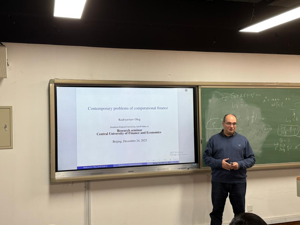 2025年12月24日星期三下午,来自俄罗斯南方联邦大学数学、力学与计算机科学研究所的Oleg Kudriavtsev教授受邀在伟德国际victor1946沙河校区13号楼209教室为与会师生带来题为“Contemporary problems of computational finance”的学术报告,本次论坛由中国精算研究院韦晓副教授主持。